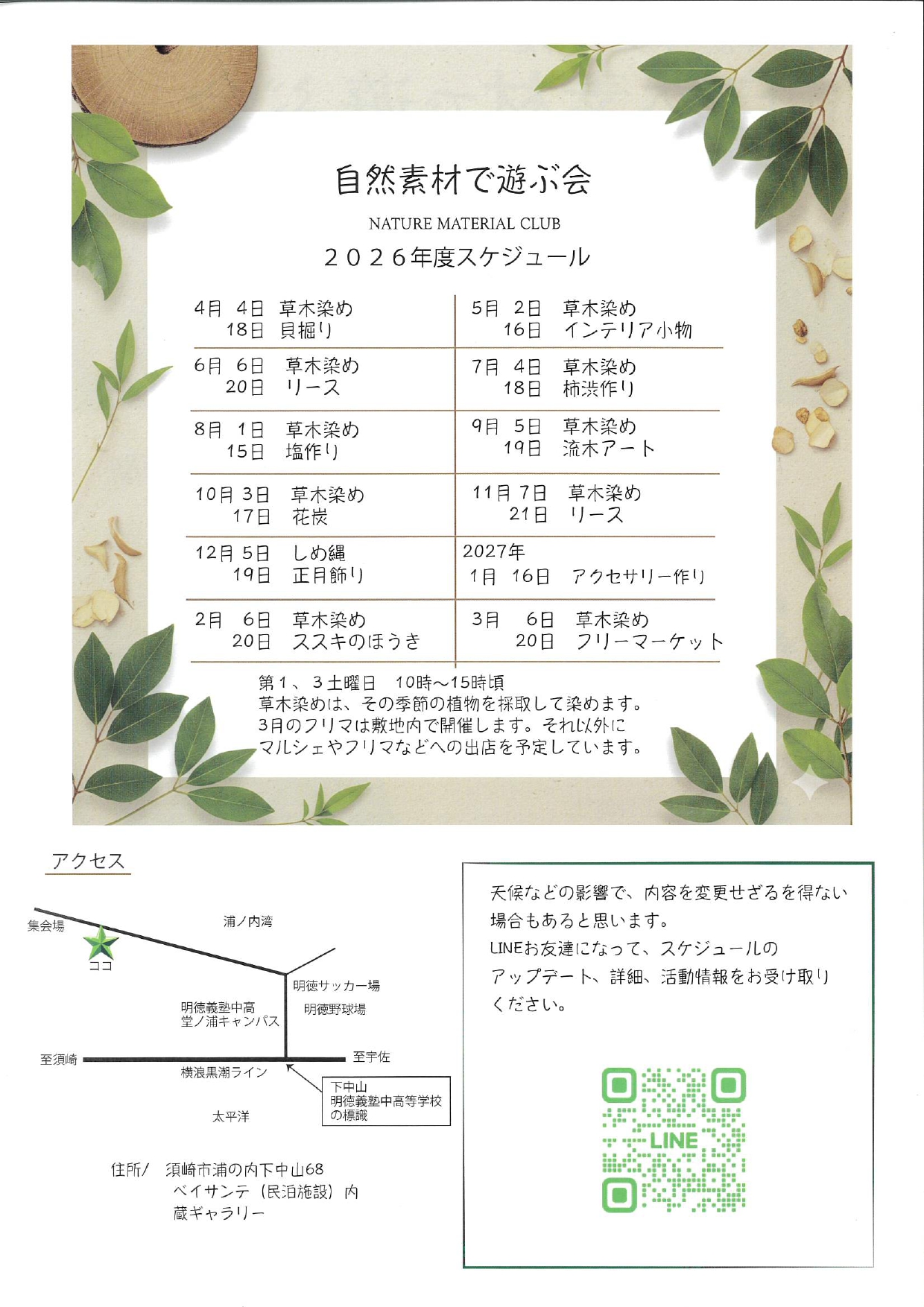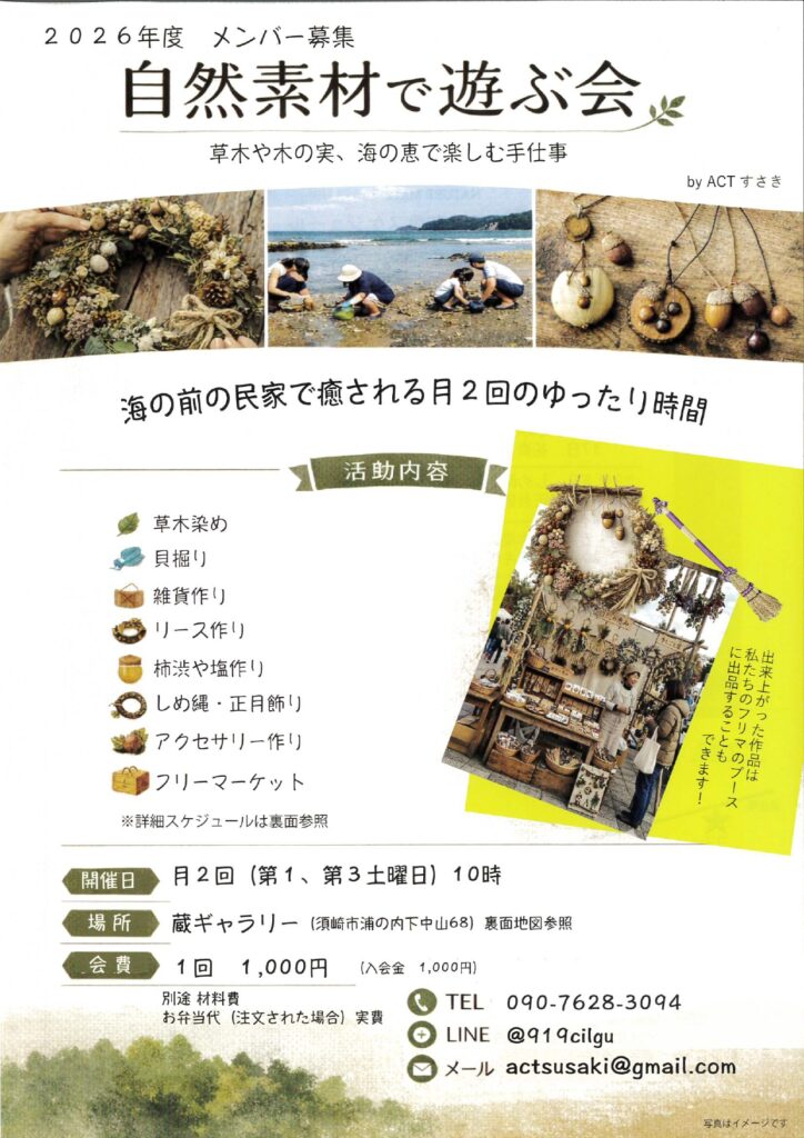 【参加者募集中!】自然素材で遊ぶ会 自然体験体験 開催中 2026年04月04日〜2027年03月20日 イベント概要 開催期間2026年04月04日〜2027年03月20日開始時間10:00終了時間15:00お問い合わせ先090-7628-3094