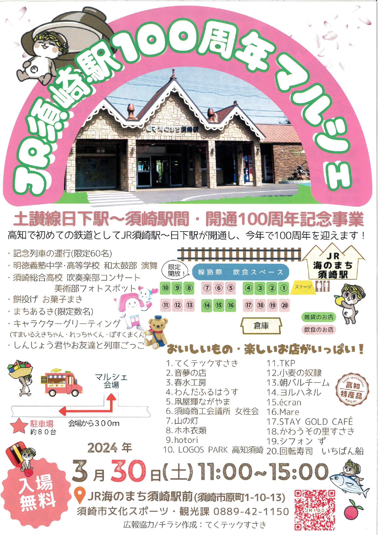 記念しまして【JR須崎駅100周年マルシェ】開催します!