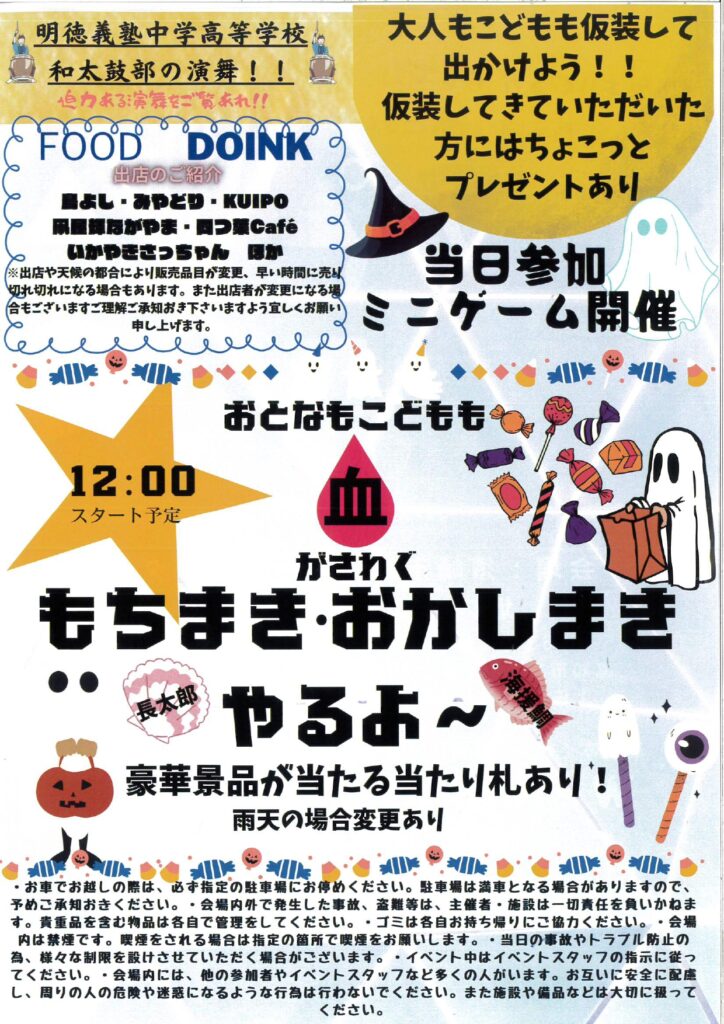 出店がでたり明徳義塾中学高等学校による和太鼓の演舞があります。
