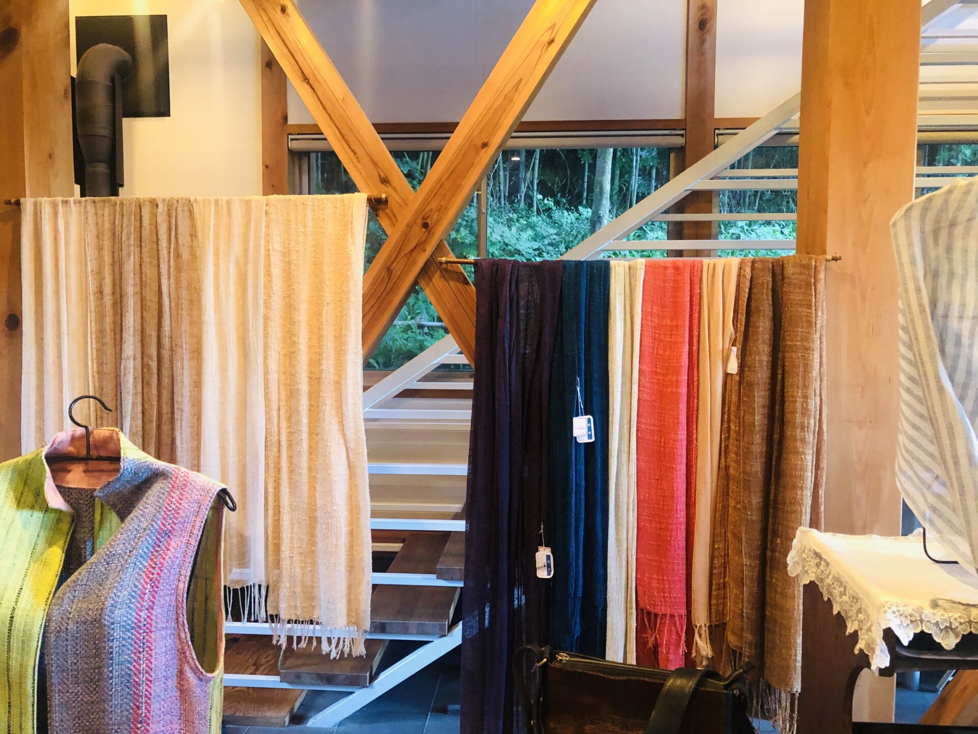 須崎市安和にあるカフェ【八洲苑】さんの手作りカレーとピザも地元野菜を使い、季節のデザートなど 添加物を使わない美味しく頂ける料理です。 女性ならプチカレーで十分に満足する量です。男性はカレーは普通サイズを選べばgood. バルコニーで食事するのも気持ちいいですね。遠くに海も見え、気持ちの良い風景です。 食事場所は2Fにあり、1Fは素敵な陶芸食器やストールなど品の良い物を展示販売しています。 見るだけでも楽しめました。