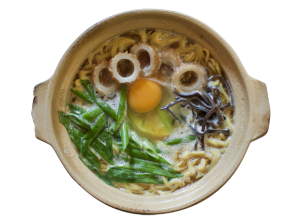 飲み会の後のお客さんにも人気の鍋焼きラーメンです。大きめのネギとコクのあるスープの相性が抜群です。