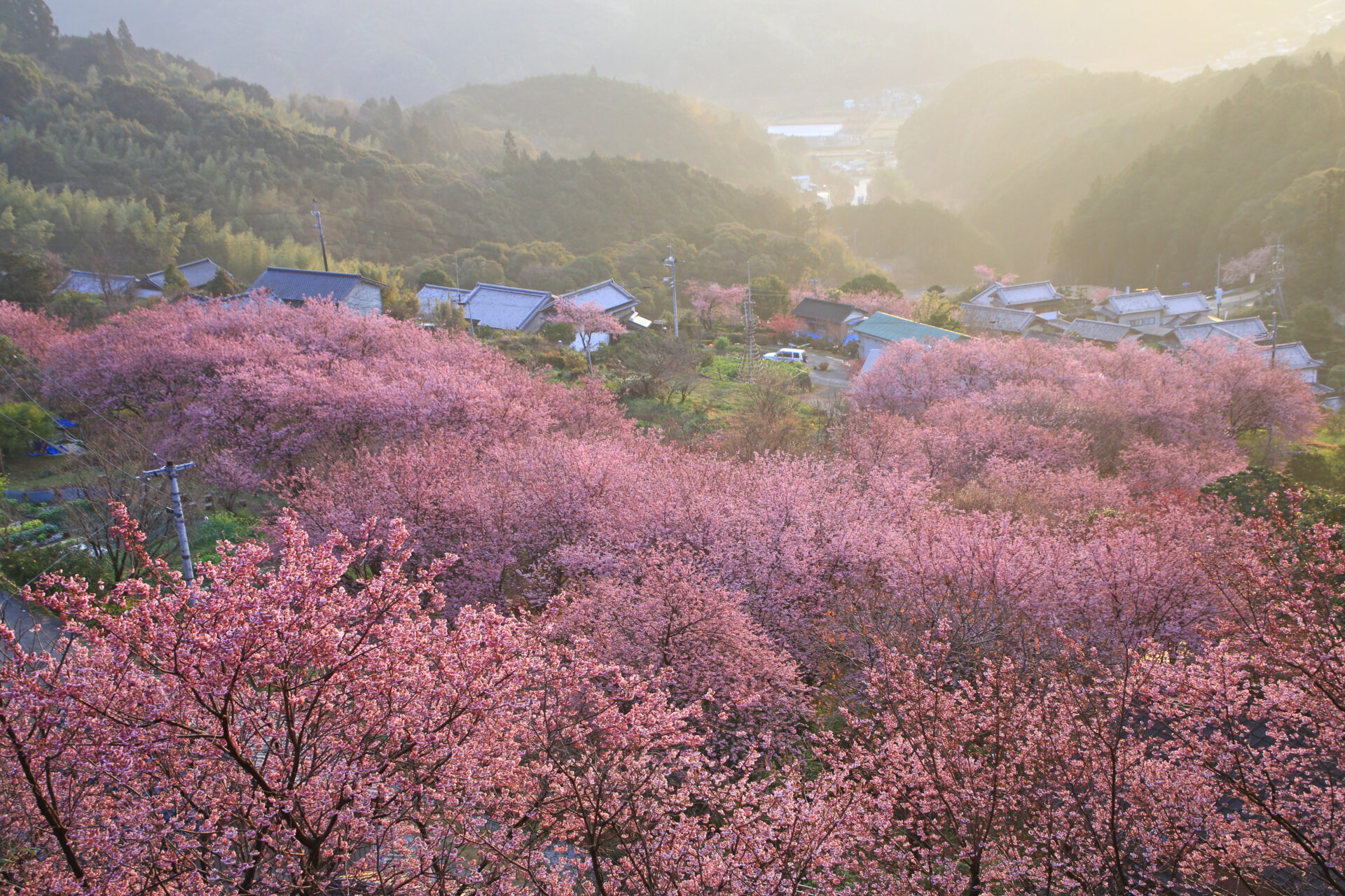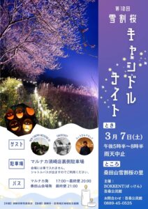この桜は、2月中旬から3月中旬頃のまだ雪の残る寒い時期に咲く大変珍しい桜で、桑田山地区全体には1,000本近くあります。