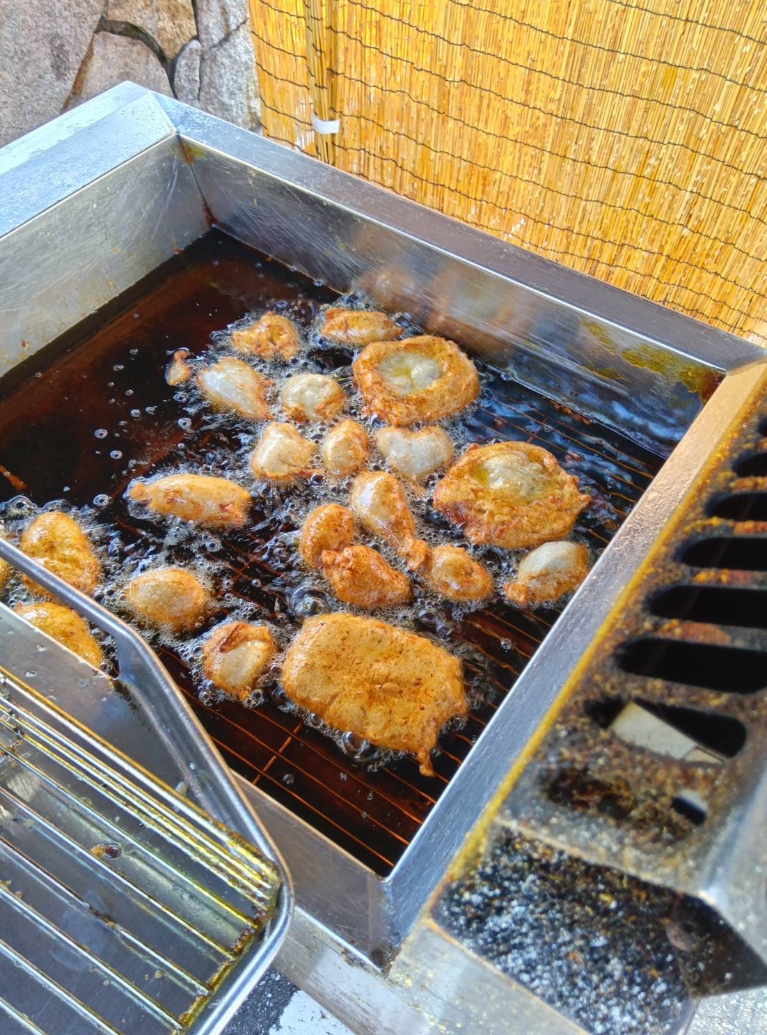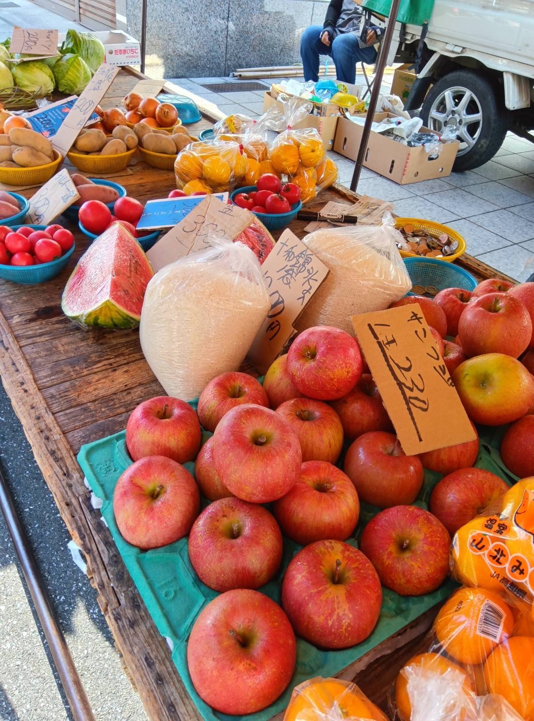60年以上続いている朝市。毎週日曜日と木曜日の朝 6 時から行われている。約 150 メートルの区間に野菜、果物、海産物、食品、植木、雑貨品等が販売されている。