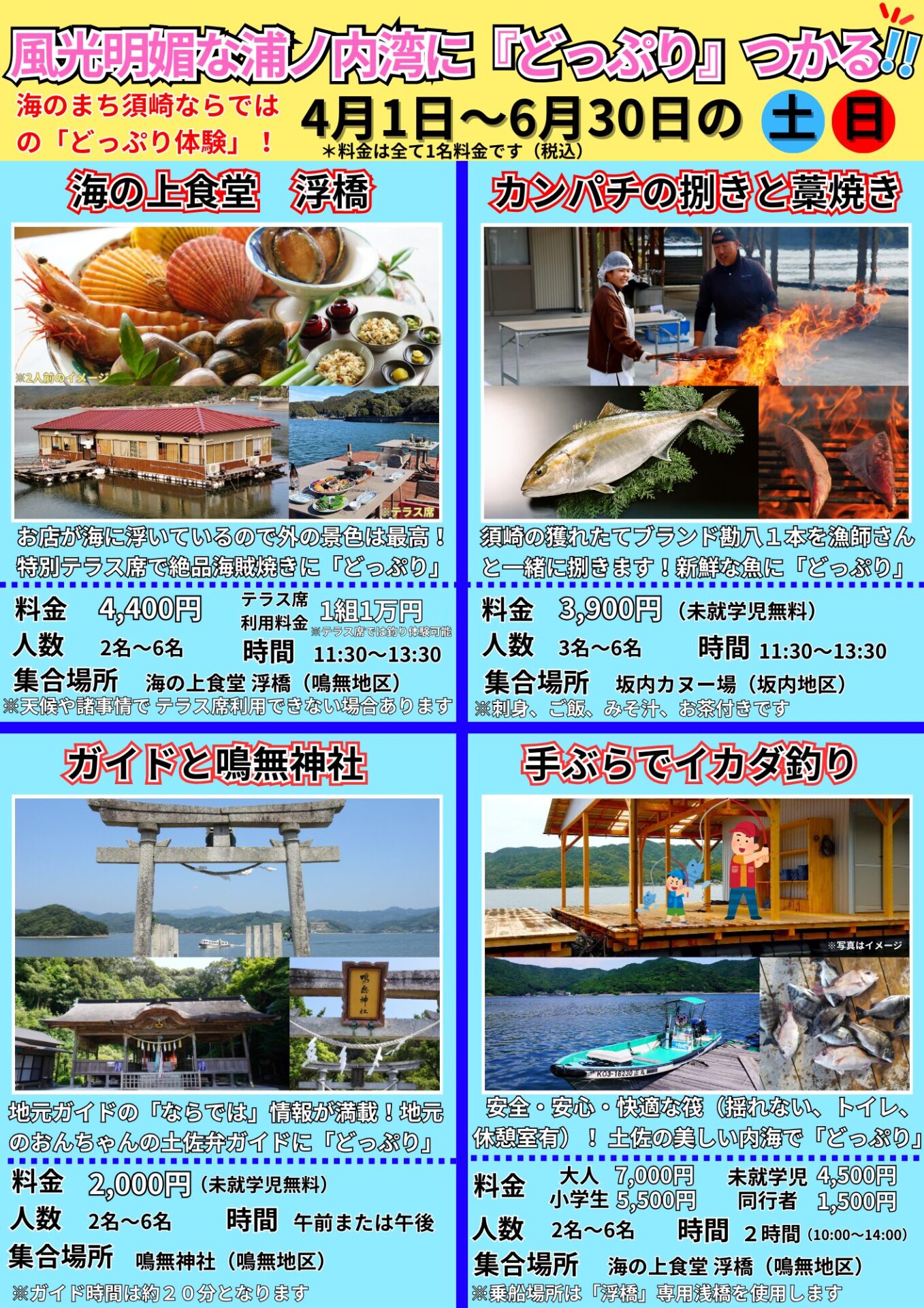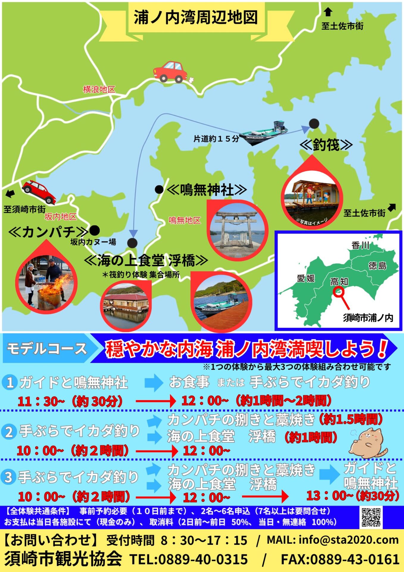 【浦ノ内湾 おすすめ体験メニュー情報(須崎市観光協会提供)】