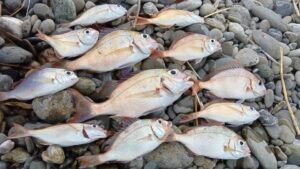・釣果は鯛12匹、アマギ 、フグなど釣れていました!