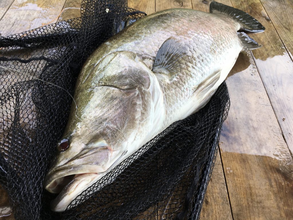 生き餌釣りでヒットした「ヒイラギ」「巨大ボラ」を追いかけたアカメが2度程顔をみせてくれました。