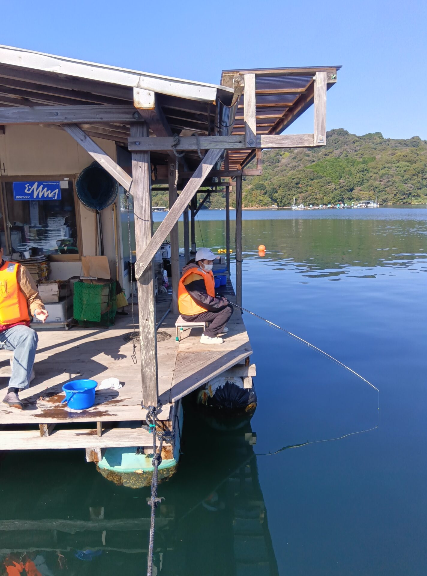 ・波穏やかな浦ノ内湾の〝釣り筏〟を使用(屋根、休憩室、トイレ完備)