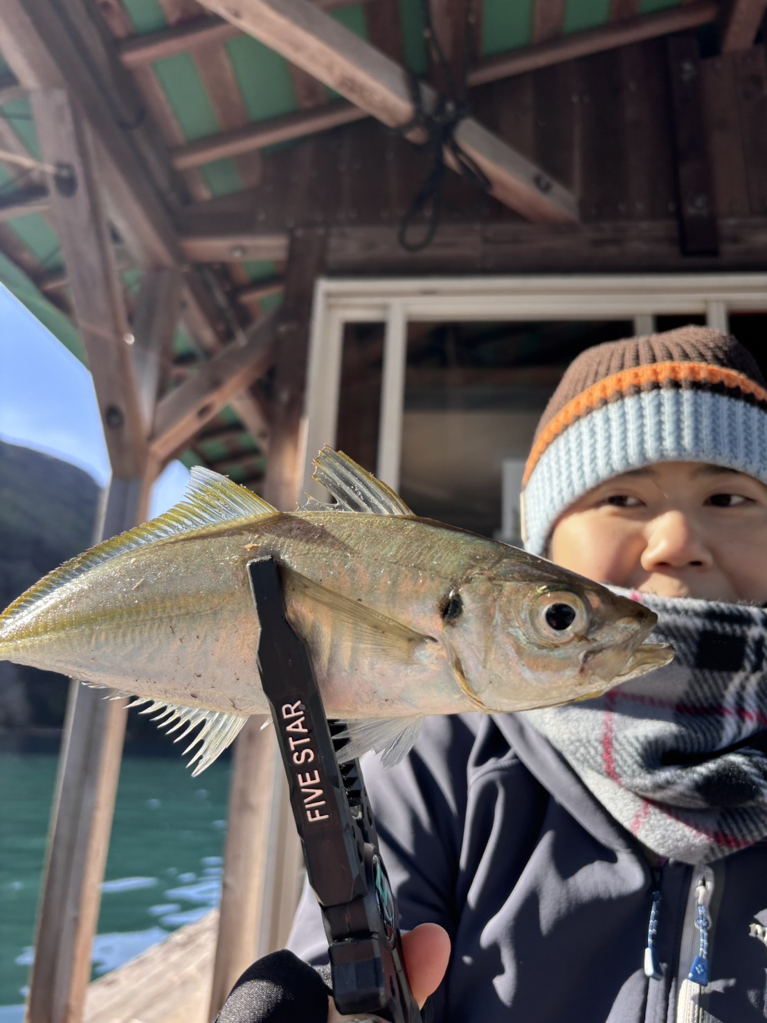 ⇩8:20 約5分で釣筏に到着(屋根付き、トイレ、 休憩室完備)